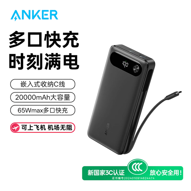 安克/Anker 65W自带线充电宝高功率多口快充20000mAh大容量移动电源 华为苹果小米手机笔记本通用 适用苹果16 15 华为小米手机平板笔记本电脑 兑换价格 10900 里程 会员卡别 终身白金卡 白金卡 金卡 银卡 普通卡 儿童卡 服务 由 会天伦3C专营店 发货并提供售后 电池容量: 10001mAh-20000mAh 颜色: 黑色 购买数量: 件 库存件 配送地址: 立即购买 加入购物车 成功添加到购物车 关闭 购物车共有 种商品 总金额为: