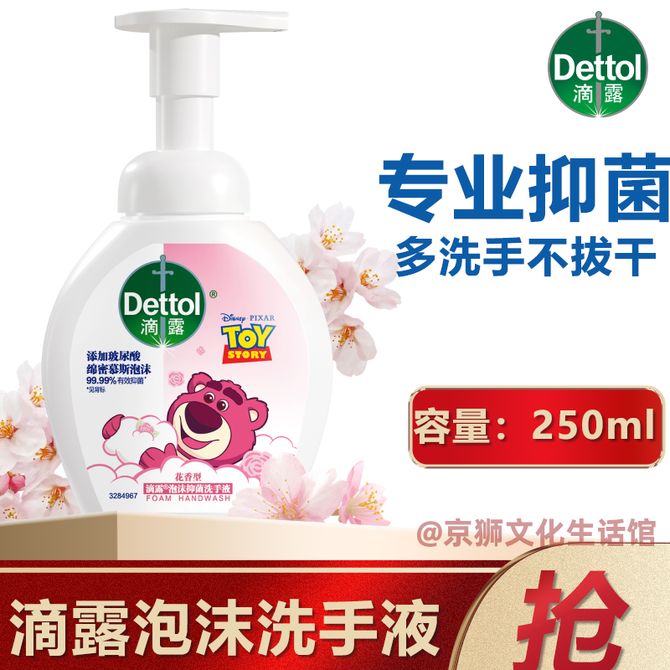 滴露/Dettol 迪士尼泡沫抑菌花香型250ml 草莓熊限定版 泡泡儿童洗手液香氛 (新旧包装随机发货)99.99%有效抑菌,温和成分宝宝使用更放心,添加玻尿酸。 兑换价格 1300 里程 会员卡别 终身白金卡 白金卡 金卡 银卡 普通卡 儿童卡 服务 由 京狮文化生活馆 发货并提供售后 清洁剂容量: 250g 净含量: 250g 购买数量: 件 库存件 配送地址: 立即购买 加入购物车 成功添加到购物车 关闭 购物车共有 种商品 总金额为: