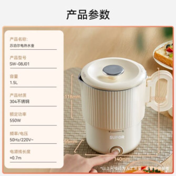 苏泊尔(SUPOR) 电水壶SW-08J01 便携式烧水壶折叠0.8L 旅行出差家用养生冲奶电热水壶学生304不锈钢泡面杯 便携式烧水壶折叠0.8L 旅行出差家用养生冲奶电热水壶学生304不锈钢泡面杯 兑换价格 9100 里程 会员卡别 终身白金卡 白金卡 金卡 银卡 普通卡 儿童卡 服务 由 纳华优选 发货并提供售后 颜色: 米白 购买数量: 件 库存件 配送地址: 立即购买 加入购物车 成功添加到购物车 关闭 购物车共有 种商品 总金额为: