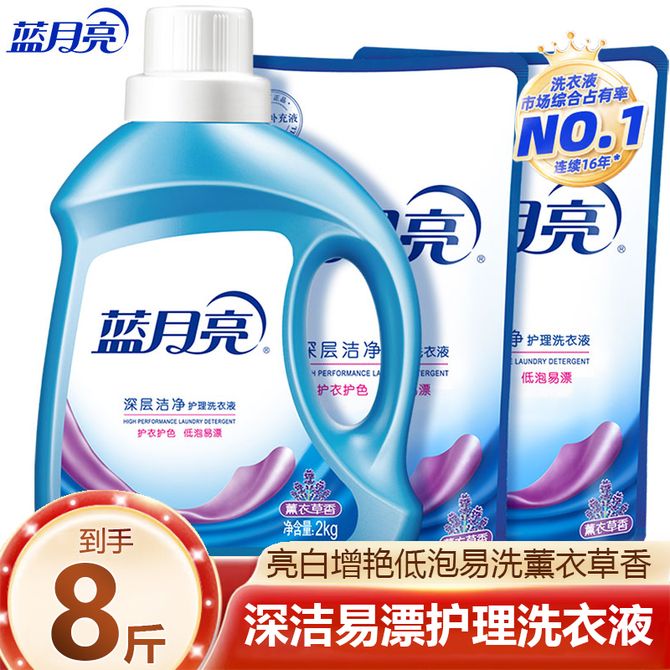 组合销售 产品介绍 产品规格 售后服务 产品咨询 发现好货 蓝月亮 深层洁净洗衣液4斤 1kgx1瓶+500gx2补充装 薰衣草香 强效去渍 1500 里程 威露士/Walch La有氧洗洗衣液套装 4斤松木清香(瓶1L+袋500ml*2) 除菌除螨 1900 里程 威露士 洗衣液除菌机洗手洗家用除螨去污1L*1瓶 1500 里程 蓝月亮 亮白增艳洗衣液2斤 1kg*1瓶 1100 里程 蓝月亮 护理洗衣液去污去渍 保护衣物纤维和原色 薰衣草香 1kg*2瓶 持久留香 速溶易漂 温和配方 1500 里程