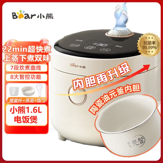 小熊/Bear 电饭锅家用一键快煮饭多功能预约定时配蒸笼1.6L蒸饭器陶瓷釉内胆 专利元釜 还原柴火饭香,7段炊煮曲线,精煮每一粒米。 兑换价格 8700 里程 会员卡别 终身白金卡 白金卡 金卡 银卡 普通卡 儿童卡 服务 由 广西桂福礼供应链管理有限公司 发货并提供售后 颜色: 其他 购买数量: 件 库存件 配送地址: 立即购买 加入购物车 成功添加到购物车 关闭 购物车共有 种商品 总金额为: