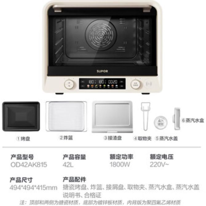苏泊尔(SUPOR) 电烤箱OD42AK815 家用风炉热风循环微蒸汽烤炸42L大容量独立控温低温发酵搪瓷内胆 家用风炉热风循环微蒸汽烤炸42L大容量独立控温低温发酵搪瓷内胆 兑换价格 34800 里程 会员卡别 终身白金卡 白金卡 金卡 银卡 普通卡 儿童卡 服务 由 纳华优选 发货并提供售后 颜色: 米白 购买数量: 件 库存件 配送地址: 立即购买 加入购物车 成功添加到购物车 关闭 购物车共有 种商品 总金额为: