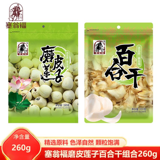 塞翁福 磨皮莲子百合干组合 精选莲子搭配优质百合 煲汤煮粥好搭档 干货食材组合 配置:磨皮莲子160g百合干100g组合 兑换价格 2000 里程 会员卡别 终身白金卡 白金卡 金卡 银卡 普通卡 儿童卡 服务 由 广西桂人礼互联网科技有限公司 发货并提供售后 规格: 袋装 购买数量: 件 库存件 配送地址: 立即购买 加入购物车 成功添加到购物车 关闭 购物车共有 种商品 总金额为: 组合销售 产品介绍 产品规格 售后服务 产品咨询 发现好货 岚海渔歌(LANHAIYUGE) 金钩海米虾米干货非特级无盐新鲜开洋虾皮海虾米干虾仁干250g 1900 里程 十月稻田 红枸杞子250g半斤特级干枸杞泡水煲汤煮粥食材 1100 里程 岚海渔歌 金钩海米250g虾米干货 1900 里程 十月稻田 新疆灰枣500g一等灰枣新疆特产小红枣零食煲汤煮粥干货 1100 里程 十月稻田 东北黑木耳 150g肉厚无根干木耳黑龙江东宁特产 火锅炒菜凉拌 6970093763042 1100 里程