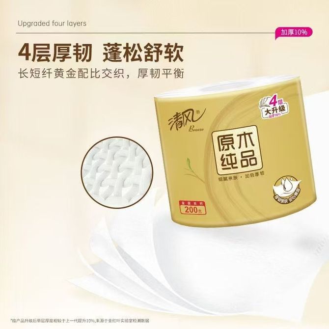 清风 有芯卷纸 原木金装20卷卷筒纸 4层加厚200克 冲泡易溶解不堵塞马桶 家用纸办公室纸巾酒店餐厅用卫生纸卷纸纸巾 该款为原木金装4层加厚200克20卷卷筒纸,详情图片共用 兑换价格 2600 里程 会员卡别 终身白金卡 白金卡 金卡 银卡 普通卡 儿童卡 服务 由 京狮文化生活馆 发货并提供售后 包装数量: 2提 购买数量: 件 库存件 配送地址: 立即购买 加入购物车 成功添加到购物车 关闭 购物车共有 种商品 总金额为: 组合销售 产品介绍 产品规格 售后服务 产品咨询 发现好货 维达卷纸 卫生纸实惠装厕纸家用厕所纸巾手纸整箱批有芯大卷家庭装 1200-2300 里程 维达 Vinda 卷纸 140g/卷*10卷 蓝色经典3层卫生纸 1300 里程 心相印抽纸 茶语丝享系列 量贩家庭装 3层*100抽*4包(茶香 压花) 1100 里程 心相印 经典系列 二层面巾纸 180抽*6包*1提 1100 里程 维达Vinda 超韧系列抽纸(3层*130抽*6包) 原生木浆卫生餐巾纸婴儿面巾纸 6包优惠装 1100 里程