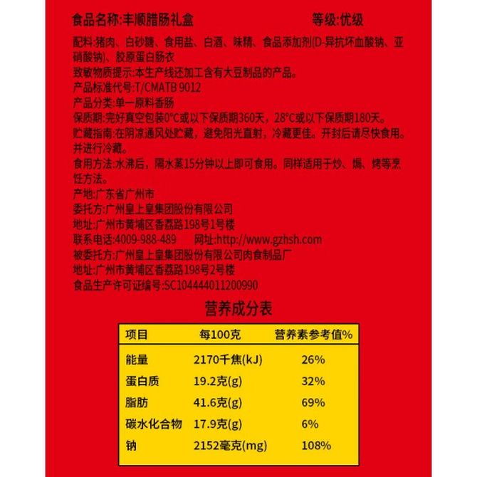 皇上皇 丰顺腊肠礼盒(6分瘦)500g 丰顺腊肠礼盒(6分瘦)500g 兑换价格 3000 里程 会员卡别 终身白金卡 白金卡 金卡 银卡 普通卡 儿童卡 服务 由 隆泰行食品专营店 发货并提供售后 规格: 礼盒 购买数量: 件 库存件 配送地址: 立即购买 加入购物车 成功添加到购物车 关闭 购物车共有 种商品 总金额为: 组合销售 产品介绍 产品规格 售后服务 产品咨询 发现好货 蒙都 风干牛肉干 500g (原味/五香/孜然/香辣)下单备注口味 新老包装随机 7000 里程 蒙都 酱牛肉200g*2袋 卤牛肉 熟食 内蒙古特产 五香真空包装熟牛肉 4100 里程 百草味 白芝麻猪肉脯100g 休闲零食肉干肉脯 1100 里程 百草味 白芝麻猪肉脯100g*1袋 1100 里程 百草味 原切牛肉片50g*1袋 牛肉干休闲零食 特产小吃肉干 1500 里程