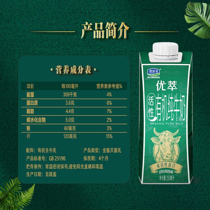 君乐宝(JUNLEBAO) 优萃有机纯牛奶 250ml*10盒整箱装 营养早餐奶 兑换价格 2600 里程 会员卡别 终身白金卡 白金卡 金卡 银卡 普通卡 儿童卡 服务 由 澳菲类优选 发货并提供售后 规格: 礼盒 购买数量: 件 库存件 配送地址: 立即购买 加入购物车 成功添加到购物车 关闭 购物车共有 种商品 总金额为: 组合销售 产品介绍 产品规格 售后服务 产品咨询 发现好货 蒙牛 特仑苏纯牛奶苗条装250ml×12盒 2900 里程 三元 经典小方白全脂纯牛奶250ml*24盒牛奶 整箱 3400 里程 伊利金典纯牛奶250ml*12盒整箱 2200 里程 三元 极致 全脂纯牛奶250ml*12盒 优质乳蛋白 恪守天然亲和 2900 里程 蒙牛 特仑苏纯牛奶250ml*12盒3.6g乳蛋白礼盒整箱装 2300 里程