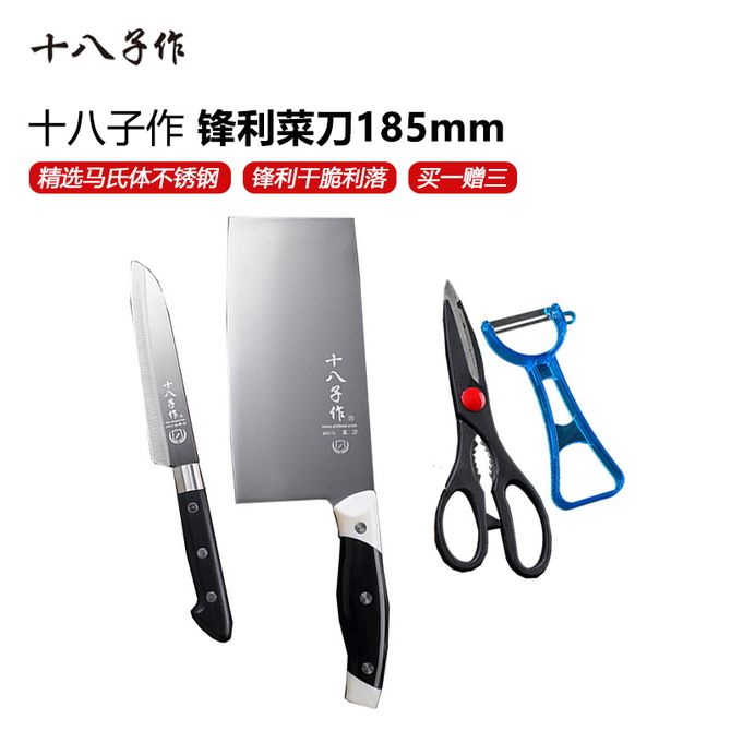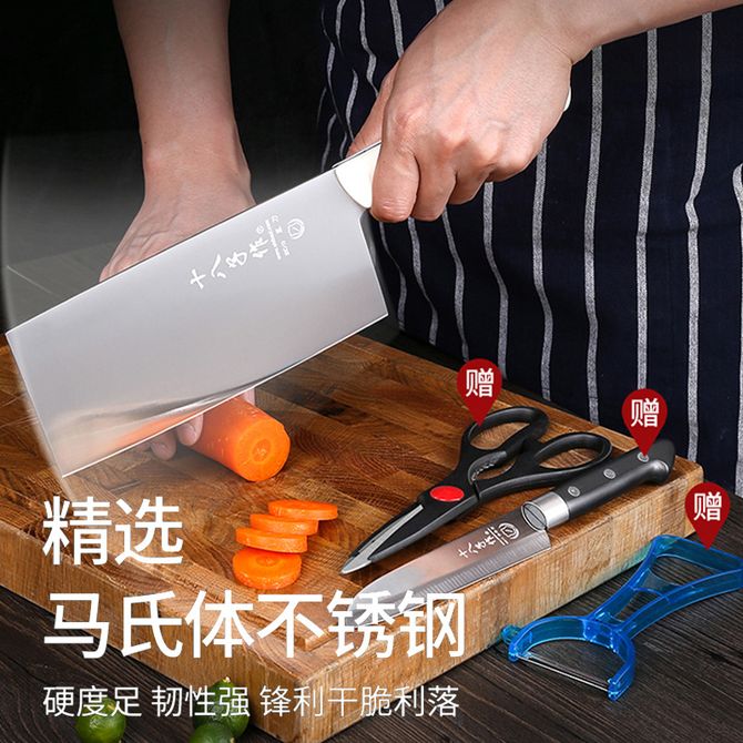【买一赠三:该款为单把菜刀,送水果刀厨房剪瓜刨】马氏体不锈钢 防滑舒适柄 合理开刃厚度 全钢沉稳手感
