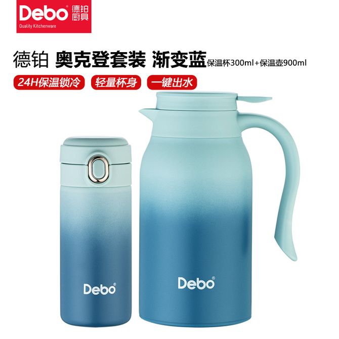 德铂(Debo) 渐变蓝-奥克登杯壶 保温壶900毫升+保温杯300毫升 24H保温保冷杯壶套装 高颜值家用杯壶 【该产品为渐变蓝900ml保温壶+300ml保温杯,详情共用】保温锁冷 轻量杯身 兑换价格 3900 里程 会员卡别 终身白金卡 白金卡 金卡 银卡 普通卡 儿童卡 服务 由 广西桂雅文化传媒有限公司 发货并提供售后 颜色: 其他 购买数量: 件 库存件 配送地址: 立即购买 加入购物车 成功添加到购物车 关闭 购物车共有 种商品 总金额为: 组合销售 产品介绍 产品规格 售后服务 产品咨询 发现好货 苏泊尔(SUPOR)保温壶家用2L大容量304不锈钢保温水壶暖水瓶热水壶TKC-200-KH53奶油白 5700 里程 天喜 保温壶大容量热水瓶暖瓶暖壶保温瓶家用保温瓶学生宿舍开水瓶TBB142-1600 1500 里程 天喜 保温壶1900ml家用热水瓶欧式保温瓶暖壶玻璃内胆暖瓶大容量保温水壶TBB142-1900 1800 里程 美厨(MAXCOOK) 2.0L保温壶不锈钢大容量内胆真空保温水壶办公室家用暖壶MCH-056 2600 里程 美厨(MAXCOOK) 家用304不锈钢保温壶水壶真空家用热水壶开水瓶2L大容量MC-H478本色银 3000 里程