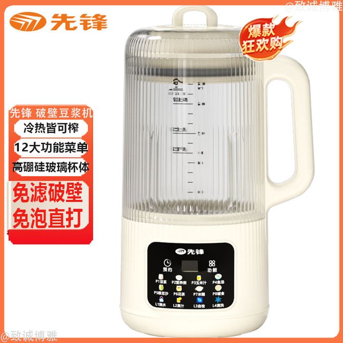 先锋 破壁豆浆机1.6L容量多功能预约豆浆机一键清洗榨汁机果汁机料理机辅食机破壁机 免泡直打 冷热皆可榨 加厚隔音罩 12大功能菜单 一键高温清洗 高硼硅玻璃杯体 兑换价格 6500 里程 会员卡别 终身白金卡 白金卡 金卡 银卡 普通卡 儿童卡 服务 由 北京致诚博雅贸易有限公司 发货并提供售后 颜色: 其他 购买数量: 件 库存件 配送地址: 立即购买 加入购物车 成功添加到购物车 关闭 购物车共有 种商品 总金额为: 组合销售 产品介绍 产品规格 售后服务 产品咨询 发现好货 WIFER 豆浆机大容量破壁机料理机全自动榨汁机免滤304钢1200ML 3500 里程 WIFER 豆浆机全自动静音大容量多功能免煮免过滤辅食榨汁破壁机316钢不锈钢豆浆机米色豆浆机1.2L 4400 里程 九阳 Joyoung 破壁免洗豆浆机0.4-1.5L超大容量 智能熬煮多功能 轻松预约DJ15E-K350 52200 里程 小熊/Bear 豆浆机1-2人家用免过滤免煮五谷杂粮多功能破壁机豆浆机小型迷你榨汁机高温一键清洗 米白色 DJJ-H05C1 6700 里程 摩 动/modong 豆浆机家用破壁机 全自动免煮辅食料理榨汁机 多功能小型预约保温 白色 1.2L -MD-DJ29 7400 里程