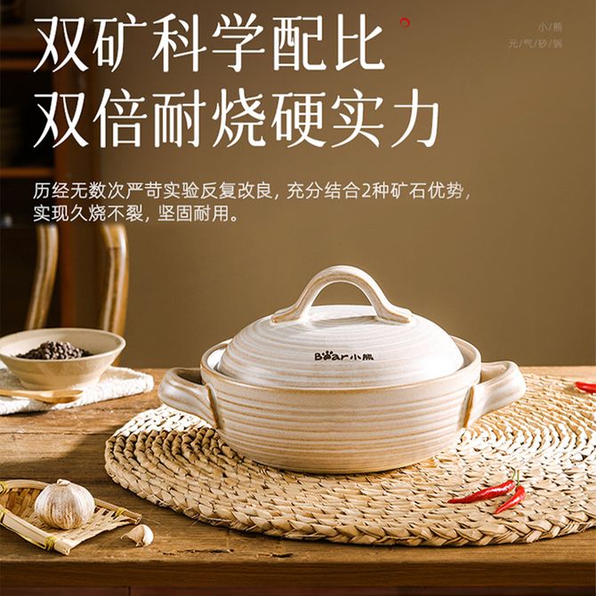 小熊 小砂锅煲1.5L家用耐高温干烧不裂陶瓷煲仔饭煲仔锅小号CPJG044P01 【1.5L】传统古法手作 0重金属析出 耐高温 持久蓄热 兑换价格 5700 里程 会员卡别 终身白金卡 白金卡 金卡 银卡 普通卡 儿童卡 服务 由 卓鹏商贸生活馆 发货并提供售后 颜色: 其他 购买数量: 件 库存件 配送地址: 立即购买 加入购物车 成功添加到购物车 关闭 购物车共有 种商品 总金额为: 组合销售 产品介绍 产品规格 售后服务 产品咨询 发现好货 荣事达/Royalstar 煲锅 砂锅煲汤熬药煮粥焖饭砂锅陶瓷炖汤沙锅家用养生汤锅瓦煲瓦罐4.6L 3900 里程 爱仕达(ASD) 煲锅 砂锅煲汤炖锅2.5L陶瓷煲仔饭砂锅燃气灶明火专用 4800 里程 炊大皇/Cookerking 砂锅5L耐高温陶瓷煲多用炖锅汤锅家用养生煲陶瓷锅明火煤燃气灶专用TCXW5002 4400 里程 炊大皇/Cookerking 砂锅 6L耐高温陶瓷煲多用炖锅汤锅 家用养生煲陶瓷锅 明火煤燃气灶专用TCXW6003 5300 里程 苏泊尔(SUPOR) 砂锅煲汤锅炖锅4.5L养生煲耐高温不开裂陶瓷煲EB45MAT01 6000 里程