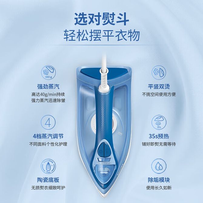 飞利浦/Philips 强劲增压蒸汽电熨斗熨烫机 家用便携式手持挂烫机熨烫刷 平竖双烫电熨斗 DST3031/20 强劲蒸汽 4档蒸汽调节 35s预热 兑换价格 15300 里程 会员卡别 终身白金卡 白金卡 金卡 银卡 普通卡 儿童卡 服务 由 存悦商贸 发货并提供售后 颜色: 蓝色 购买数量: 件 库存件 配送地址: 立即购买 加入购物车 成功添加到购物车 关闭 购物车共有 种商品 总金额为: