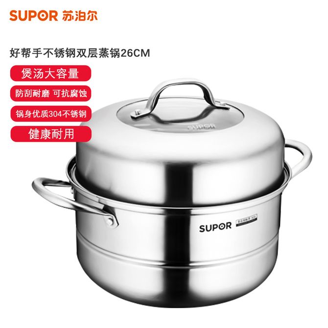 组合销售 产品介绍 产品规格 售后服务 产品咨询 发现好货 苏泊尔(SUPOR) 蒸锅不锈钢28cm复底双层SZ28B5蒸鱼蒸馒头蒸馍大蒸锅蒸笼 8700 里程 德铂(Debo)汤锅不锈钢单层蒸锅蒸笼电磁炉两用锅艾琳诺26cm DEP-DS146 2100 里程 拜格(Bayco) 蒸锅三层家用蒸馒头煲汤加厚汤锅BG1548【28cm】 3000 里程 炊大皇(COOKER KING) 304不锈钢三层蒸锅家用复合底汤锅蒸馒头包子可视可立高拱盖30cm 6100 里程 德铂(Debo) 科洛姆双层蒸锅不锈钢汤锅20cm不挑炉灶DEP-913 2600 里程