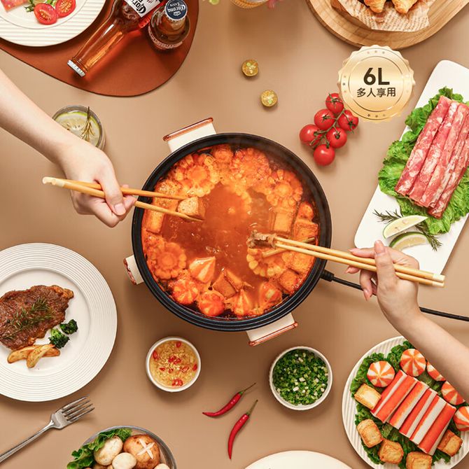 新飞/Frestec 多用途锅 6L大容量电涮锅 汤锅 1350W快速升温 FTZG-R157 多功能煮锅 一锅多用,简洁娇小机身,涮、蒸、煮、煎、油炸, 6L大容量、宴客聚餐不用愁,满足4-6人火锅料理需求。 锅胆内部特氟龙涂层、不沾涂层,清洁方便、安全卫生。 双档调节,高档1350W大火、低档675W小火 兑换价格 7000 里程 会员卡别 终身白金卡 白金卡 金卡 银卡 普通卡 儿童卡 服务 由 九樱互动家电专营店 发货并提供售后 颜色: 白色 购买数量: 件 库存件 配送地址: 立即购买 加入购物车 成功添加到购物车 关闭 购物车共有 种商品 总金额为: