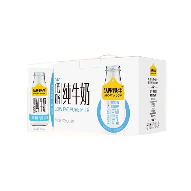 认养一头牛ADOPT A COW 低脂纯牛奶200ml*10盒*1箱早餐奶 Q 脂喝一半 自律不断 兑换价格 1700 里程 会员卡别 终身白金卡 白金卡 金卡 银卡 普通卡 儿童卡 服务 由 致良优选 发货并提供售后 规格: 礼盒 购买数量: 件 库存件 配送地址: 立即购买 加入购物车 成功添加到购物车 关闭 购物车共有 种商品 总金额为: 组合销售 产品介绍 产品规格 售后服务 产品咨询 发现好货 蒙牛 特仑苏纯牛奶苗条装250ml×12盒 2900 里程 三元 经典小方白全脂纯牛奶250ml*24盒牛奶 整箱 3400 里程 伊利金典纯牛奶250ml*12盒整箱 2200 里程 三元 极致 全脂纯牛奶250ml*12盒 优质乳蛋白 恪守天然亲和 2900 里程 伊利 金典纯牛奶整箱 250ml*12盒 原生高钙3.6g乳蛋白 2000 里程