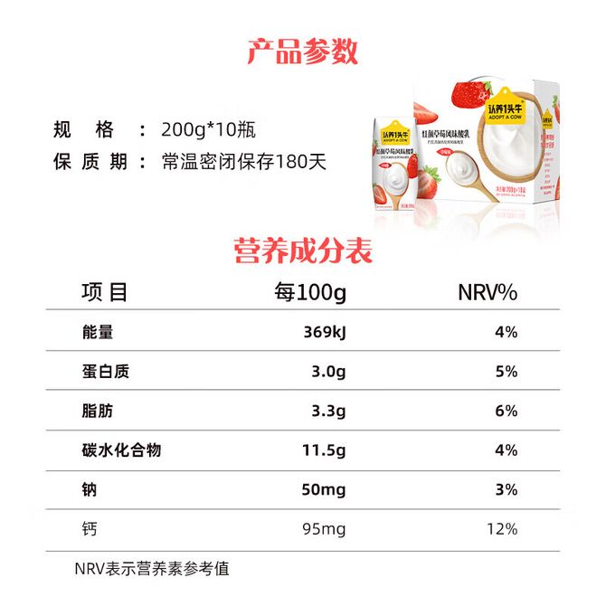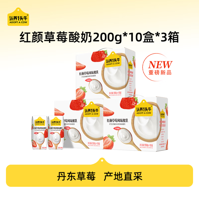 认养一头牛ADOPT A COW 草莓酸奶200mL*10盒*3箱 Q 红颜草莓风味酸乳 兑换价格 5200 里程 会员卡别 终身白金卡 白金卡 金卡 银卡 普通卡 儿童卡 服务 由 澳菲类优选 发货并提供售后 规格: 组合 购买数量: 件 库存件 配送地址: 立即购买 加入购物车 成功添加到购物车 关闭 购物车共有 种商品 总金额为: 组合销售 产品介绍 产品规格 售后服务 产品咨询 发现好货 蒙牛 特仑苏纯牛奶苗条装250ml×12盒 2900 里程 三元 经典小方白全脂纯牛奶250ml*24盒牛奶 整箱 3400 里程 伊利金典纯牛奶250ml*12盒整箱 2200 里程 伊利 金典纯牛奶整箱 250ml*12盒 3.6g乳蛋白 原生高钙 礼盒装 1800 里程 特仑苏 新日期纯牛奶250ml*12盒 3.6g乳蛋白 礼盒装 京东/顺丰发货 2400 里程