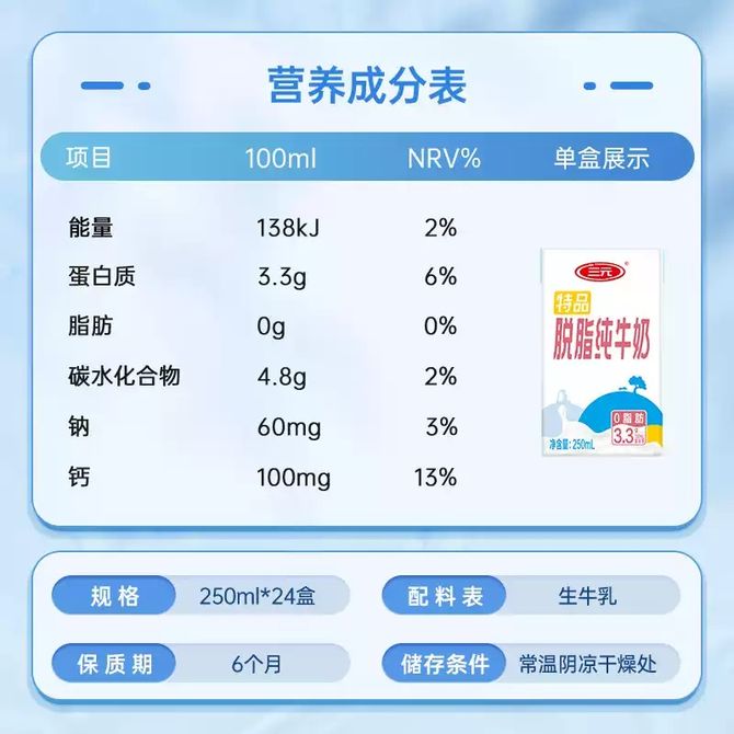 脱脂轻负担 三元好牛奶
