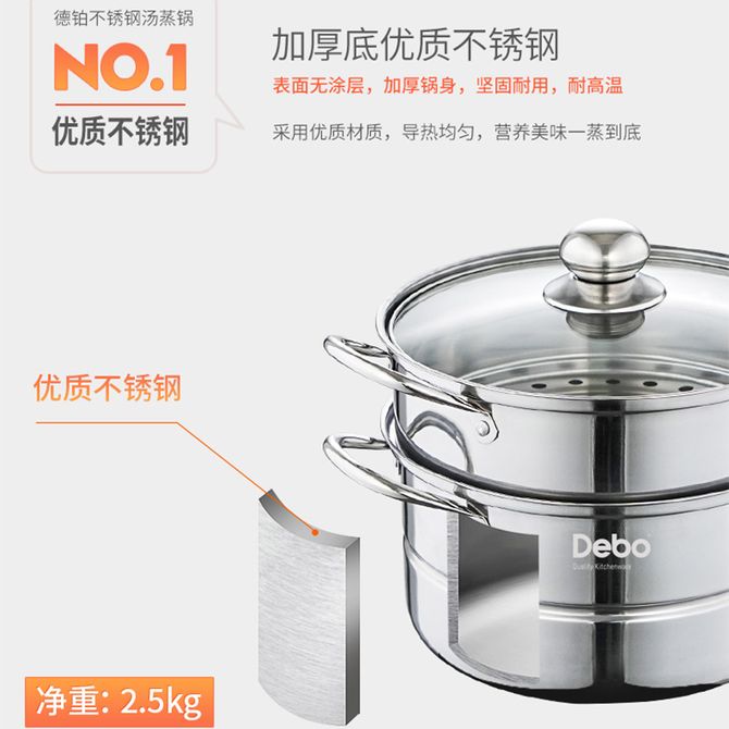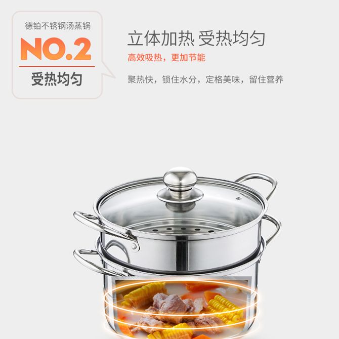组合销售 产品介绍 产品规格 售后服务 产品咨询 发现好货 苏泊尔(SUPOR) 蒸锅不锈钢28cm复底双层SZ28B5蒸鱼蒸馒头蒸馍大蒸锅蒸笼 8700 里程 德铂(Debo)汤锅不锈钢单层蒸锅蒸笼电磁炉两用锅艾琳诺26cm DEP-DS146 2100 里程 拜格(Bayco) 蒸锅三层家用蒸馒头煲汤加厚汤锅BG1548【28cm】 3000 里程 炊大皇(COOKER KING) 304不锈钢三层蒸锅家用复合底汤锅蒸馒头包子可视可立高拱盖30cm 6100 里程 德铂(Debo) 科洛姆双层蒸锅不锈钢汤锅20cm不挑炉灶DEP-913 2600 里程