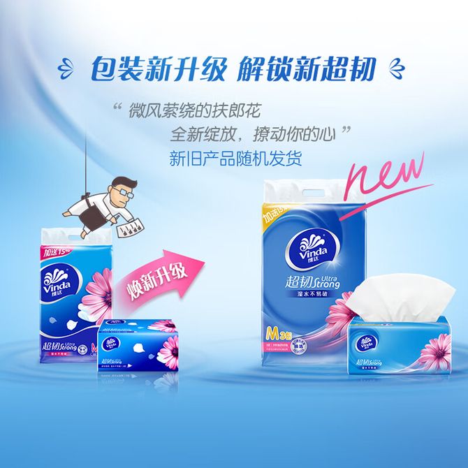 维达 面巾纸超韧软抽3层M码150抽6包 加大加厚 生活用纸餐巾纸卫生纸擦手纸提装 超韧软抽3层M码150抽6包,自然无香,湿水不易破。(新旧包装随机发货) 兑换价格 1300 里程 会员卡别 终身白金卡 白金卡 金卡 银卡 普通卡 儿童卡 服务 由 京狮文化生活馆 发货并提供售后 包装数量: 2提 购买数量: 件 库存件 配送地址: 立即购买 加入购物车 成功添加到购物车 关闭 购物车共有 种商品 总金额为: 组合销售 产品介绍 产品规格 售后服务 产品咨询 发现好货 维达卷纸 卫生纸实惠装厕纸家用厕所纸巾手纸整箱批有芯大卷家庭装 1200-2300 里程 维达 Vinda 卷纸 140g/卷*10卷 蓝色经典3层卫生纸 1300 里程 心相印抽纸 茶语丝享系列 量贩家庭装 3层*100抽*4包(茶香 压花) 1100 里程 心相印 经典系列 二层面巾纸 180抽*6包*1提 1100 里程 维达Vinda 超韧系列抽纸(3层*130抽*6包) 原生木浆卫生餐巾纸婴儿面巾纸 6包优惠装 1100 里程