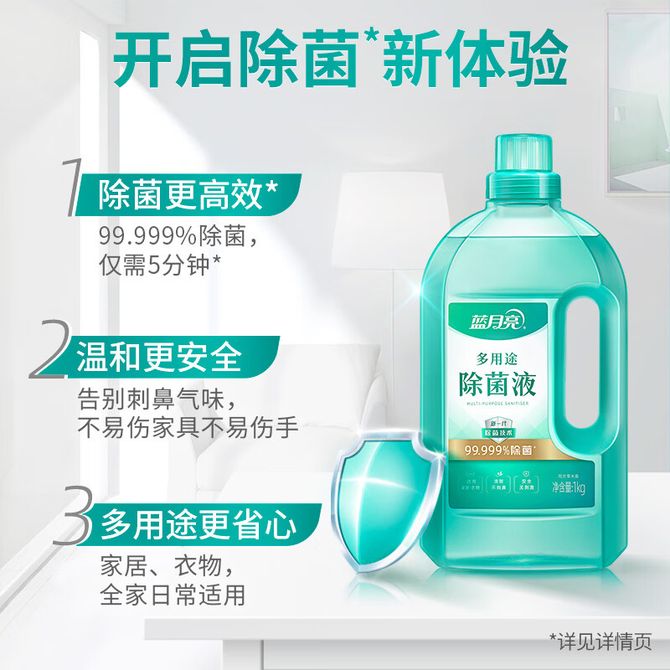 蓝月亮 多用途除菌液1KG 衣物消毒液松木香 家居、衣物适用 蓝月亮品牌方仓库直接发货,正品无忧,部分商品包装更新,新旧包装随机发货,还请多多见谅。 兑换价格 4400 里程 会员卡别 终身白金卡 白金卡 金卡 银卡 普通卡 儿童卡 服务 由 银弓家居日用专营店 发货并提供售后 净含量: 其他容量 清洁剂容量: 其他容量 购买数量: 件 库存件 配送地址: 立即购买 加入购物车 成功添加到购物车 关闭 购物车共有 种商品 总金额为: 组合销售 产品介绍 产品规格 售后服务 产品咨询 发现好货 蓝月亮 深层洁净洗衣液4斤 1kgx1瓶+500gx2补充装 薰衣草香 强效去渍 1500 里程 威露士/Walch La有氧洗洗衣液套装 4斤松木清香(瓶1L+袋500ml*2) 除菌除螨 1900 里程 威露士 洗衣液除菌机洗手洗家用除螨去污1L*1瓶 1500 里程 蓝月亮 亮白增艳洗衣液2斤 1kg*1瓶 1100 里程 蓝月亮 护理洗衣液去污去渍 保护衣物纤维和原色 薰衣草香 1kg*2瓶 持久留香 速溶易漂 温和配方 1500 里程