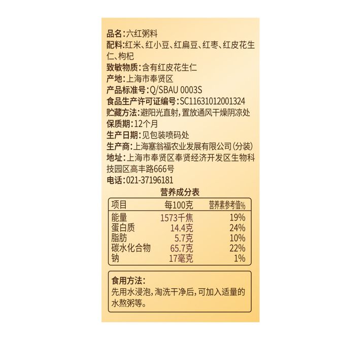 塞翁福 红谷物六红粥料600g 红谷物六红粥料600g 兑换价格 2700 里程 会员卡别 终身白金卡 白金卡 金卡 银卡 普通卡 儿童卡 服务 由 灿烽粮油专营店 发货并提供售后 规格: 盒装 购买数量: 件 库存件 配送地址: 立即购买 加入购物车 成功添加到购物车 关闭 购物车共有 种商品 总金额为: 组合销售 产品介绍 产品规格 售后服务 产品咨询 发现好货 金熊 泰国茉莉 香米 1kg 泰国原料进口 1300 里程 十月稻田当季新米辽河长粒香大米 5kg 东北大米 香米 粳米 十斤 2100 里程 源头说 五常有机稻花香新米 东北大米 2.5kg(双重防伪认证) 4200 里程 十月稻田 长粒香大米2.5kg 东北大米5斤 东北香米 1300 里程 裕道府东北大米好味稻香米 5kg 2000 里程