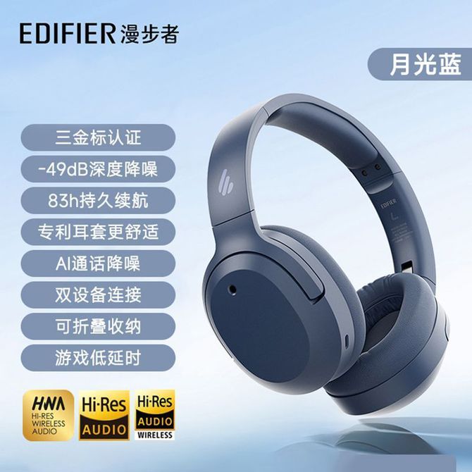 漫步者/EDIFIER 头戴式主动降噪蓝牙耳机 三金标认证HiFi音质耳机 长续无线畅听音乐耳麦 月光蓝 轻量佩戴,-49dB深度降噪,40mm镀钛复合振膜,三金标认证HiFi音质,空间音效,AI通话降噪,蓝牙5.4,83h超长续航,游戏低延时,双设备连接,适配眼睛耳套,可折叠设计,专属APP 兑换价格 17000 里程 会员卡别 终身白金卡 白金卡 金卡 银卡 普通卡 儿童卡 服务 由 智科精品 发货并提供售后 颜色: 深蓝色 购买数量: 件 库存件 配送地址: 立即购买 加入购物车 成功添加到购物车 关闭 购物车共有 种商品 总金额为: