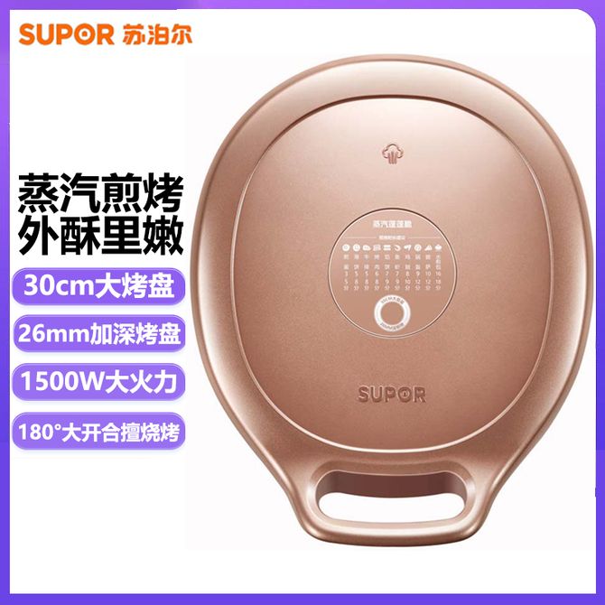 苏泊尔(SUPOR) 电饼铛煎烤机双面加热煎饼铛家用早餐机三明治机烙饼机加大加深烤盘 蒸汽煎烤 外酥里嫩 30cm大烤盘 26mm加深烤盘 1500W大火力 180°大开合擅烧烤 兑换价格 6500 里程 会员卡别 终身白金卡 白金卡 金卡 银卡 普通卡 儿童卡 服务 由 广西自贸区京通桂达科技发展有限公司 发货并提供售后 颜色: 其他 购买数量: 件 库存件 配送地址: 立即购买 加入购物车 成功添加到购物车 关闭 购物车共有 种商品 总金额为: 组合销售 产品介绍 产品规格 售后服务 产品咨询 发现好货 苏泊尔(SUPOR)电饼铛家用 双面加热煎饼铛煎烤机三明治机烙饼锅早餐机25mm加深烤盘火力可调JD31A847A 6500 里程 苏泊尔(SUPOR) 电饼铛 自动煎烤机 电火锅多功能 加大加深60mm双加热烙饼 锅面煎饼电饼档 两档火力 JT30A818 5700 里程 苏泊尔(SUPOR)电饼铛家用双面加热电饼档煎烤机烙饼机双面悬浮加热早餐机三明治机JJ30A648-Q 5400 里程 美的(Midea)电饼铛家用智能双面加热煎烤机烙饼机蛋饼机薄饼机煎饼烙饼锅JHN30F 4800 里程 小熊/Bear 八角电烤盘家用无烟电烤炉多功能烤涮电火锅烤肉锅 6500 里程