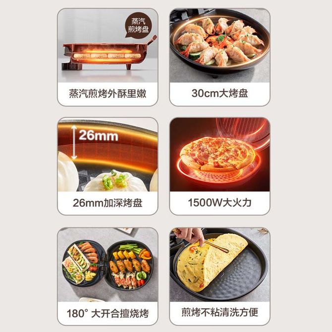 组合销售 产品介绍 产品规格 售后服务 产品咨询 发现好货 苏泊尔(SUPOR)电饼铛家用 双面加热煎饼铛煎烤机三明治机烙饼锅早餐机25mm加深烤盘火力可调JD31A847A 6500 里程 苏泊尔(SUPOR) 电饼铛 自动煎烤机 电火锅多功能 加大加深60mm双加热烙饼 锅面煎饼电饼档 两档火力 JT30A818 5700 里程 苏泊尔(SUPOR)电饼铛家用双面加热电饼档煎烤机烙饼机双面悬浮加热早餐机三明治机JJ30A648-Q 5400 里程 美的(Midea)电饼铛家用智能双面加热煎烤机烙饼机蛋饼机薄饼机煎饼烙饼锅JHN30F 4800 里程 小熊/Bear 八角电烤盘家用无烟电烤炉多功能烤涮电火锅烤肉锅 6500 里程