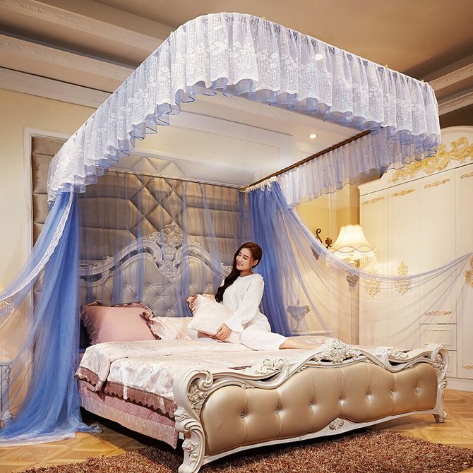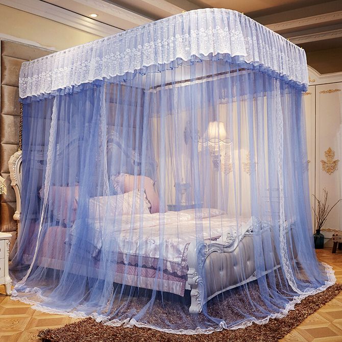 - 远梦/YOURMOON A类防摔蚊帐 时尚方顶 坐床式蚊帐 家用 大床三开门 加密帐纱 大空间 (颜色随机发)