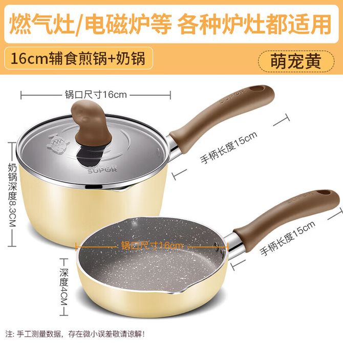 苏泊尔(SUPOR) 小馋喵辅食套锅(萌宠黄)TP1956E1-Y QK 奶锅+煎锅 兑换价格 8700 里程 会员卡别 终身白金卡 白金卡 金卡 银卡 普通卡 儿童卡 服务 由 人人余厨具专营店 发货并提供售后 颜色: 淡黄色 购买数量: 件 库存件 配送地址: 立即购买 加入购物车 成功添加到购物车 关闭 购物车共有 种商品 总金额为: 组合销售 产品介绍 产品规格 售后服务 产品咨询 发现好货 翰乐 炒锅HL-011章丘铁锅-单锅带盖34cm+铲子 3000 里程 美厨(MAXCOOK) 不锈钢盆五件套筛洗菜盆家用料理盆腌肉盆烘焙打蛋盆沥水篮味斗MCPW-5 2600 里程 翰乐 炒锅HL-011章丘铁锅-单锅34cm+铲子 2500 里程 德铂Debo 克里斯蒂 煎锅炒锅汤锅三件套装锅具厨具DEP-560 15200 里程 爱仕达不锈钢多功能防烫锅铲饭勺铲具六件套SSQ-06G-UGO 3900 里程