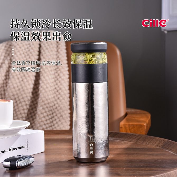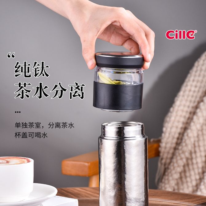 希乐 泡茶钛杯养生直饮杯子商务便携泡茶分离杯 530ml XBT-24204