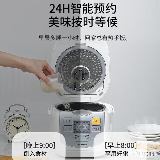 松下/Panasonic 微电脑电饭煲2L容量智能可预约家用多功能10大 智能菜单智能煮饭锅 2L 小巧容量,10大 智能菜单,24H 智能预约,360° 立体加热 兑换价格 16100 里程 会员卡别 终身白金卡 白金卡 金卡 银卡 普通卡 儿童卡 服务 由 北京致诚博雅贸易有限公司 发货并提供售后 颜色: 其他 购买数量: 件 库存件 配送地址: 立即购买 加入购物车 成功添加到购物车 关闭 购物车共有 种商品 总金额为: 组合销售 产品介绍 产品规格 售后服务 产品咨询 发现好货 苏泊尔(SUPOR) 电饭煲电饭锅4L大容量 不粘内胆4-6个人前置大屏面板24小时预约上蒸下煮多功能家用智能SF40FC0063 7700 里程 美菱/MELNG 电饭煲3L触控式预约定时MF-LC3005 4400 里程 美的(Midea) 电饭煲 家用3L智能预约多功能电饭锅小型1-4人煮饭锅智能 白色 MB-FB30M161 7800 里程 康佳/Konka 迷你电饭煲小电饭锅2L容量智能温控12小时预约煮饭煮粥锅 4800 里程 美的/Midea 电饭煲电饭锅3-4个人家用4L大容量聚能釜金属机身大火力米饭锅【升级焖香阀】RE417 8700 里程
