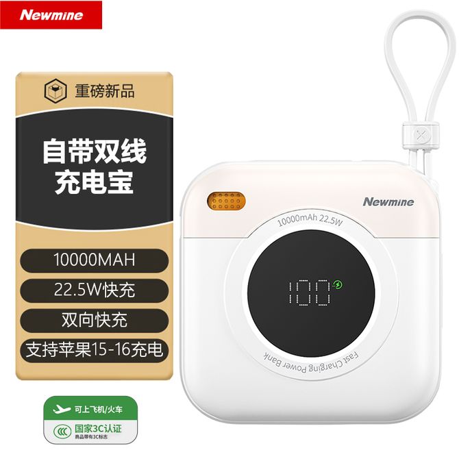 纽曼(Newmine) 【国家3C认证】10000mAh自带线充电宝迷你小巧便携22.5W超级快充移动电源 F86-E白色 3C认证 可上飞机 机身有3C标识 兑换价格 4700 里程 会员卡别 终身白金卡 白金卡 金卡 银卡 普通卡 儿童卡 服务 由 贝洛美智能科技精品馆 发货并提供售后 电池容量: 8001mAh-10000mAh 颜色: 白色 购买数量: 件 库存件 配送地址: 立即购买 加入购物车 成功添加到购物车 关闭 购物车共有 种商品 总金额为: 组合销售 产品介绍 产品规格 售后服务 产品咨询 发现好货 ZNNCO 充电宝20000毫安时超薄小巧迷你自带线大容量快充移动电源便携苹果华为小米2万mAh手机 4200 里程 睿量/Remax 磁吸无线充电宝 Magsafe快充 5000mAh超薄小巧便携移动电源 手机背夹迷你移动电源 适用于苹果华为小米手机 RPP-107 4600 里程 雷摄 T68S【3C认证可上飞机】充电宝10000毫安 移动电源 22.5W快充丨1万毫安丨多口输出 1700 里程 纽曼(Newmine) 自带四线充电宝 3C认证 LED智能数显10000毫安移动电源 AL03 经典黑 3000 里程 雷摄 【3C认证】LS-YDZJ01 10000毫安 四线多功能移动电源 黑色 2000 里程
