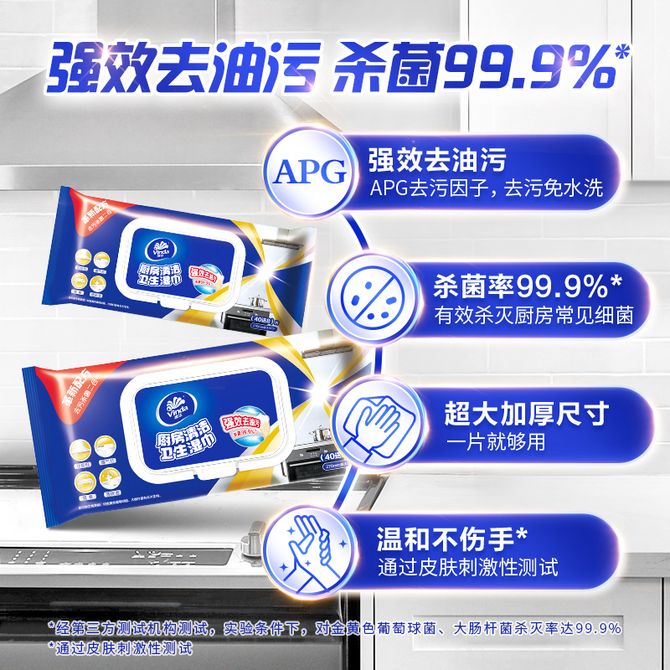 维达 厨房清洁卫生湿巾油污克星单包(48片/包) 厨房湿纸巾去油污湿纸巾油烟机擦油厨房专用 杀菌99.99% 厨房清洁卫生湿巾单包(48片/包) ,强效去油污,洁净杀菌(新旧包装随机发货) 兑换价格 1100 里程 会员卡别 终身白金卡 白金卡 金卡 银卡 普通卡 儿童卡 服务 由 京狮文化生活馆 发货并提供售后 包装数量: 单包 购买数量: 件 库存件 配送地址: 立即购买 加入购物车 成功添加到购物车 关闭 购物车共有 种商品 总金额为: 组合销售 产品介绍 产品规格 售后服务 产品咨询 发现好货 维达卷纸 卫生纸实惠装厕纸家用厕所纸巾手纸整箱批有芯大卷家庭装 1200-2300 里程 维达 Vinda 卷纸 140g/卷*10卷 蓝色经典3层卫生纸 1300 里程 心相印抽纸 茶语丝享系列 量贩家庭装 3层*100抽*4包(茶香 压花) 1100 里程 心相印 经典系列 二层面巾纸 180抽*6包*1提 1100 里程 维达Vinda 超韧系列抽纸(3层*130抽*6包) 原生木浆卫生餐巾纸婴儿面巾纸 6包优惠装 1100 里程