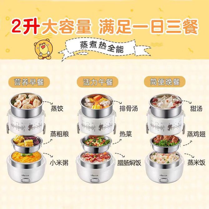 组合销售 产品介绍 产品规格 售后服务 产品咨询 发现好货 小熊/Bear 电热饭盒三层保温饭盒可插电可微波炉加热便当盒学生上班族便携不锈钢蒸煮饭神器 2L DFH-S2358三层饭盒 3900 里程 小熊/Bear 电热饭盒可蒸煮加热饭盒插电上班族热饭菜神器便当盒自热保温 DFHG16W7绿色 7000 里程 小熊/Bear 电热饭盒上班族三层大容量可插电不锈钢煮蒸热饭神器加热保温饭盒便携带学生便当盒 4400 里程 小熊/Bear 电热饭盒插电式保温饭盒上班族便携式微电脑预约多功能加热饭盒 DFH-B13E5 3100 里程 小熊/Bear 电热饭盒加热饭盒上班族便携式免注水加热饭盒可插电保温饭盒 班自热饭盒热饭神器 5200 里程