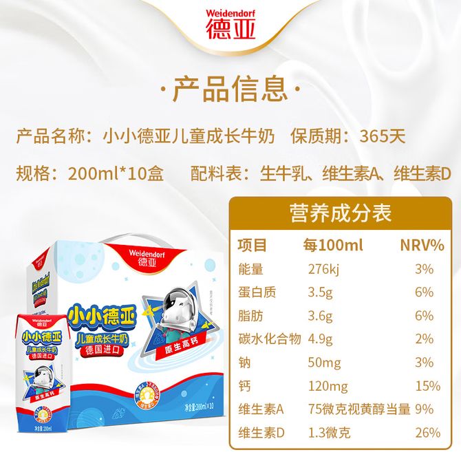 德亚 儿童成长牛奶200ml*10盒 德国进口奶源 青少年成长营养奶 礼盒装 黄金奶源 德国进口 简单配方 兑换价格 2400 里程 会员卡别 终身白金卡 白金卡 金卡 银卡 普通卡 儿童卡 服务 由 广西桂人礼互联网科技有限公司 发货并提供售后 规格: 礼盒 购买数量: 件 库存件 配送地址: 立即购买 加入购物车 成功添加到购物车 关闭 购物车共有 种商品 总金额为: 组合销售 产品介绍 产品规格 售后服务 产品咨询 发现好货 蒙牛 特仑苏纯牛奶苗条装250ml×12盒 2900 里程 三元 经典小方白全脂纯牛奶250ml*24盒牛奶 整箱 3400 里程 伊利金典纯牛奶250ml*12盒整箱 2200 里程 伊利 金典纯牛奶整箱 250ml*12盒 3.6g乳蛋白 原生高钙 礼盒装 1800 里程 特仑苏 新日期纯牛奶250ml*12盒 3.6g乳蛋白 礼盒装 京东/顺丰发货 2400 里程