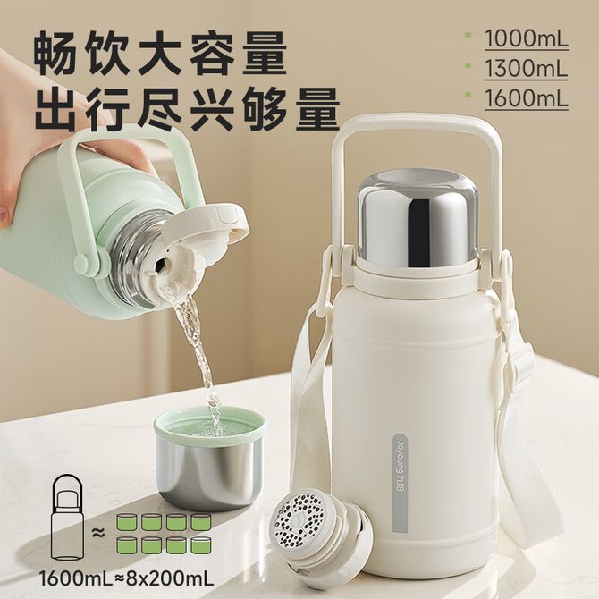 九阳/Joyoung 畅饮保温杯 1.3L大容量男女士水杯316L不锈钢运动茶杯户外便携保温杯学生水杯-白色 (此款为1.3L白色,详情图片共用)316L不锈钢,双层杯盖 一盖多用 防烫隔热 便携提手 兑换价格 4300 里程 会员卡别 终身白金卡 白金卡 金卡 银卡 普通卡 儿童卡 服务 由 广西桂雅文化传媒有限公司 发货并提供售后 颜色: 其他 购买数量: 件 库存件 配送地址: 立即购买 加入购物车 成功添加到购物车 关闭 购物车共有 种商品 总金额为: