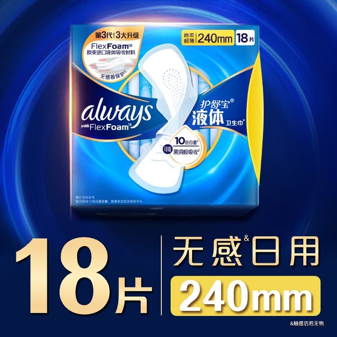 护舒宝 液体卫生巾 未来感极护无感自在轻薄姨妈巾 240mm日用18片装 新旧版本随机发 干爽不粘腻 轻薄更无痕 自在不怕漏 革新液体材料 兑换价格 2200 里程 会员卡别 终身白金卡 白金卡 金卡 银卡 普通卡 儿童卡 服务 由 上海耀嬉网络科技有限公司 发货并提供售后 包装数量: 单包 购买数量: 件 库存件 配送地址: 立即购买 加入购物车 成功添加到购物车 关闭 购物车共有 种商品 总金额为: