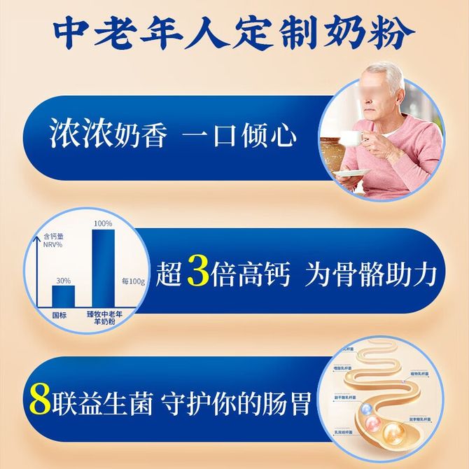组合销售 产品介绍 产品规格 售后服务 产品咨询 发现好货 蒙牛高钙奶粉400g/袋独立包装16条 1100 里程 蒙牛 铂金装 中老年奶粉400g 益生菌高钙富硒成人奶粉 便捷条装 1400 里程 蒙牛 铂金装中老年益生菌高钙富硒成人奶粉800g罐装0蔗糖营养送礼 2700 里程 蒙牛 悠瑞 金装中老年奶粉400g 高钙富硒成人奶粉 营养冲饮 1500 里程 蒙牛 乐享装中老年奶粉多维高钙成人奶粉800g罐装 2300 里程