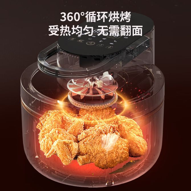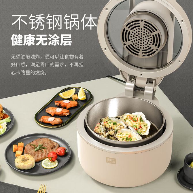 利仁 空气炸锅无涂层0涂层304不锈钢内胆6L大容量不用翻面透明可视家用一体机烤箱KZ-D6018