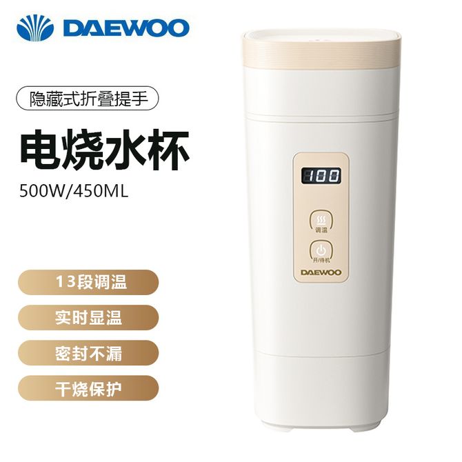 大宇 电烧水杯450ML多段调温密封防漏电热加热水杯便携式烧水壶母婴级316不锈钢 13段调温 实时显温 密封不漏 隐藏式折叠提手 干烧保护 兑换价格 10000 里程 会员卡别 终身白金卡 白金卡 金卡 银卡 普通卡 儿童卡 服务 由 北京致诚博雅贸易有限公司 发货并提供售后 颜色: 其他 购买数量: 件 库存件 配送地址: 立即购买 加入购物车 成功添加到购物车 关闭 购物车共有 种商品 总金额为: 组合销售 产品介绍 产品规格 售后服务 产品咨询 发现好货 苏泊尔(SUPOR)电水壶 1.7L 不锈钢/YL SW-17S13A 5700 里程 志高/Chigo 电水壶烧水壶1.8L大容量电热水壶双层防烫自动断电家用烧水开水壶不锈钢 电水壶 DC-A18F 1900 里程 小熊/Bear 电水壶家用烧水壶 不锈钢自动断电恒温热水壶保温一体电热水壶1.5L容量 3500 里程 小熊/Bear 烧水壶电水壶热水壶电热水壶开水壶304不锈钢内胆双层防烫1.5L大容量ZDH-Q15U8 3000 里程 志高(CHIGO) 电水壶1.8L大容量烧水壶家用热水壶开水壶DC-A18F 1900 里程