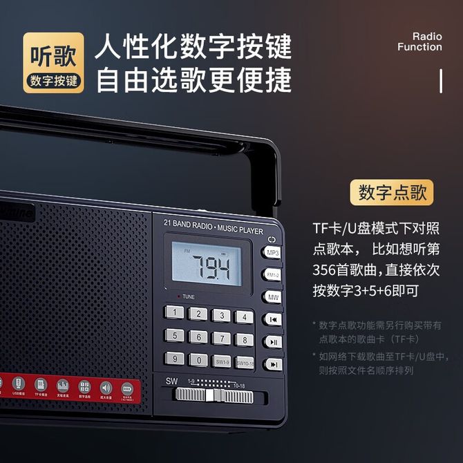 纽曼(Newmine) 全波段收音机MX30 充电式迷你小音响 插卡随身听评书唱戏 可用于听力练习 可手提方便携带 兑换价格 5200 里程 会员卡别 终身白金卡 白金卡 金卡 银卡 普通卡 儿童卡 服务 由 星尘数码 发货并提供售后 颜色: 黑色 购买数量: 件 库存件 配送地址: 立即购买 加入购物车 成功添加到购物车 关闭 购物车共有 种商品 总金额为: