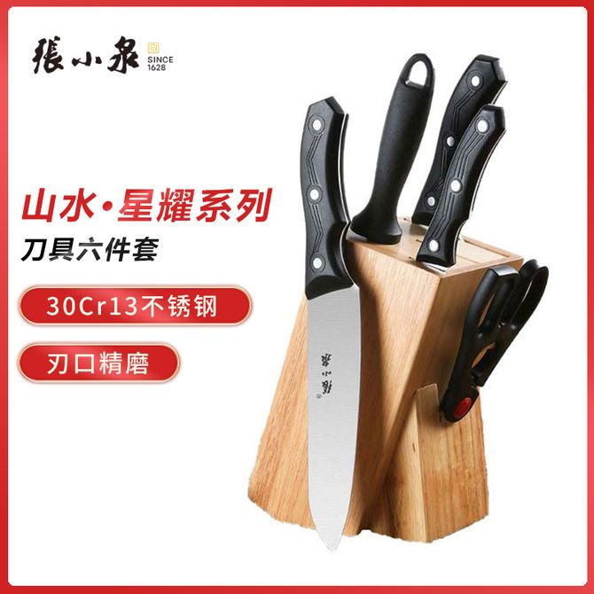 张小泉 厨具套装菜刀剪刀多功能刀具组合六件套D40490100山水星耀系 材料采用30Cr13 不锈钢,强度高耐磨性好 兑换价格 7000 里程 会员卡别 终身白金卡 白金卡 金卡 银卡 普通卡 儿童卡 服务 由 广西自贸区贝佳网络科技有限公司 发货并提供售后 颜色: 其他 购买数量: 件 库存件 配送地址: 立即购买 加入购物车 成功添加到购物车 关闭 购物车共有 种商品 总金额为: 组合销售 产品介绍 产品规格 售后服务 产品咨询 发现好货 张小泉 不锈钢折叠便携水果刀精磨刃口SK-2 1100 里程 苏泊尔supor 厨房刀具不锈钢套装 尖峰系列7件套刀.TK1520Q 14800 里程 愉家菜刀专用快速磨刀器 家用三段精磨口多功能磨刀石K133 1100 里程 双立人(ZWILLING) 水果刀削皮刀刮皮刀家用小刀多功能蔬果刀刀具Enjoy厨刀8cm 3300 里程 拜格(BAYCO)日式小菜刀料理刀水果刀3件套 家用厨具刀具套装BD3138 1300 里程