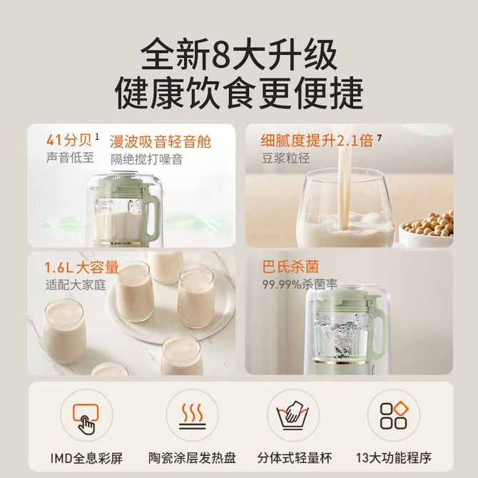 组合销售 产品介绍 产品规格 售后服务 产品咨询 发现好货 WIFER 豆浆机大容量破壁机料理机全自动榨汁机免滤304钢1200ML 3500 里程 九阳 Joyoung 破壁免洗豆浆机0.4-1.5L超大容量 智能熬煮多功能 轻松预约DJ15E-K350 52200 里程 美菱/MELNG 迷你破壁豆浆机全自动破壁机静音家用0.8L MQ-C86 6100 里程 WIFER 不锈钢316豆浆机大容量破壁机料理机全自动榨汁机免滤白316钢 1500ML(整壶1.8L) 4700 里程 九阳(Joyoung)豆浆机1.2L料理机多功能榨汁机米糊辅食机一键清洗可预约DJ12X-D138 11700 里程