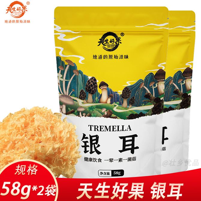 天生好果/TIAN SHENG HAO GUO 银耳58g*2袋小朵银耳不薰硫耳肉厚实口感软糯 朵型紧密完整 无根无沙 自然清香 兑换价格 1100 里程 会员卡别 终身白金卡 白金卡 金卡 银卡 普通卡 儿童卡 服务 由 壮乡优品生活馆 发货并提供售后 规格: 袋装 购买数量: 件 库存件 配送地址: 立即购买 加入购物车 成功添加到购物车 关闭 购物车共有 种商品 总金额为: