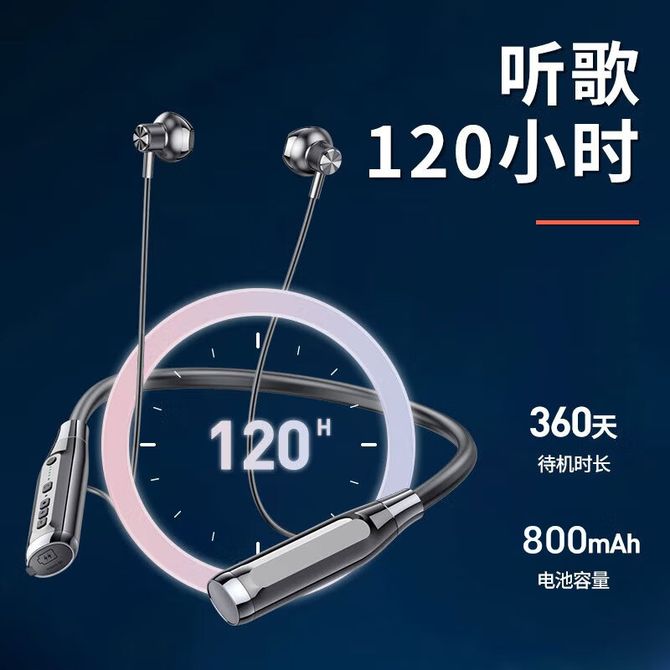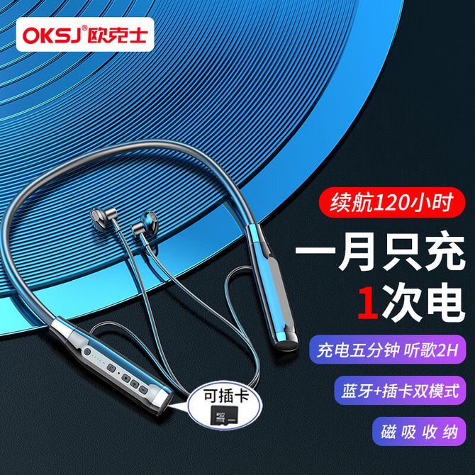 OKSJ 无线蓝牙耳机 运动挂脖式跑步可插卡耳机 超长续航半入耳式降噪颈挂耳机 A12 黑色