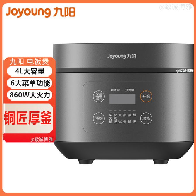九阳/Joyoung 铜匠厚釜电饭煲4L家用容量24h预约定时6大菜单功能养生炖煮都在行 不粘内胆电饭煲 金属拉丝机身 5层铜匠厚釜 860W环绕加热 可拆卸内盖 6大菜单功能 兑换价格 10900 里程 会员卡别 终身白金卡 白金卡 金卡 银卡 普通卡 儿童卡 服务 由 北京致诚博雅贸易有限公司 发货并提供售后 颜色: 其他 购买数量: 件 库存件 配送地址: 立即购买 加入购物车 成功添加到购物车 关闭 购物车共有 种商品 总金额为: