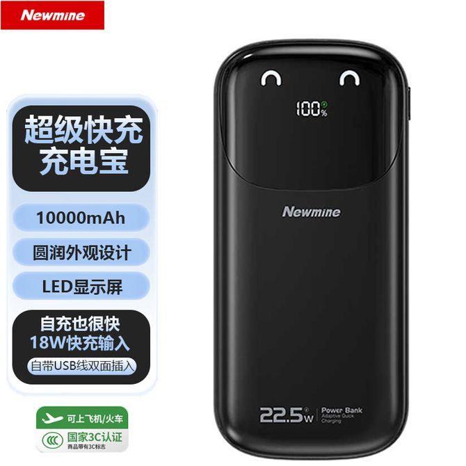 纽曼(Newmine) 【国家3C认证】10000mAh大容量充电宝自带线22.5W超级快充小巧便携移动电源 AL28黑色 3C认证 可上飞机 机身有3C标识 不支持苹果15 兑换价格 3500 里程 会员卡别 终身白金卡 白金卡 金卡 银卡 普通卡 儿童卡 服务 由 贝洛美智能科技精品馆 发货并提供售后 电池容量: 8001mAh-10000mAh 颜色: 黑色 购买数量: 件 库存件 配送地址: 立即购买 加入购物车 成功添加到购物车 关闭 购物车共有 种商品 总金额为: 组合销售 产品介绍 产品规格 售后服务 产品咨询 发现好货 ZNNCO 充电宝20000毫安时超薄小巧迷你自带线大容量快充移动电源便携苹果华为小米2万mAh手机 4200 里程 睿量/Remax 磁吸无线充电宝 Magsafe快充 5000mAh超薄小巧便携移动电源 手机背夹迷你移动电源 适用于苹果华为小米手机 RPP-107 4600 里程 雷摄 T68S【3C认证可上飞机】充电宝10000毫安 移动电源 22.5W快充丨1万毫安丨多口输出 1700 里程 纽曼(Newmine) 自带四线充电宝 3C认证 LED智能数显10000毫安移动电源 AL03 经典黑 3000 里程 雷摄 【3C认证】LS-YDZJ01 10000毫安 四线多功能移动电源 黑色 2000 里程