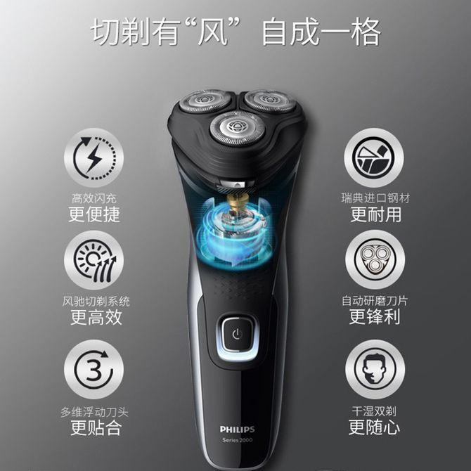 组合销售 产品介绍 产品规格 售后服务 产品咨询 发现好货 映趣 电动剃须刀男士刮胡刀充电式三刀 BlackStone黑色 3100 里程 飞利浦/Philips 电动剃须刀 S2509/S2508 三刀头 1小时充电 全身水洗 男士电动剃须刀胡须刀干湿两用须刨高效闪充 10900 里程 朗威 剃须刀电动剃须刀充电式刮胡刀电动男士双头浮动胡须胡子刀 RS182 1100 里程 超人/SID 电动剃须刀 RS210/RS215双刀头 全身水洗 便携式小巧迷 你出差旅行车载男士电动刮胡刀 2600 里程 小米 电动剃须刀小巧便携刮胡刀 Type-c充电全身水洗低噪音充电式胡须刀S100 4000 里程