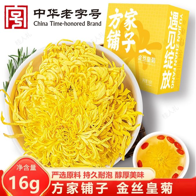 方家铺子 金丝皇菊16g(盒装)饱满大朵黄菊花茶