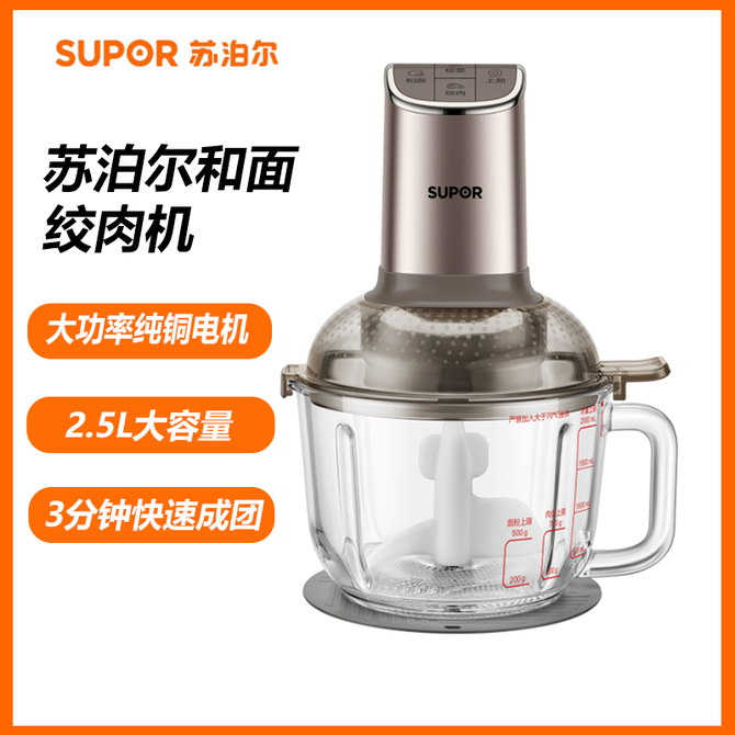 苏泊尔(SUPOR) 绞肉机家用料理机2.5L大容量迷你多功能电动搅拌机小型碎肉机和面机 一机多用 3分钟快速和面 数显屏幕 16 电子食谱 2.5L大容量 大功率纯铜电机 兑换价格 13500 里程 会员卡别 终身白金卡 白金卡 金卡 银卡 普通卡 儿童卡 服务 由 广西桂福礼供应链管理有限公司 发货并提供售后 颜色: 其他 购买数量: 件 库存件 配送地址: 立即购买 加入购物车 成功添加到购物车 关闭 购物车共有 种商品 总金额为: